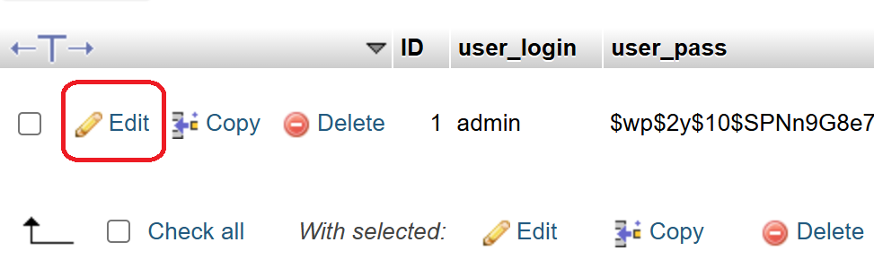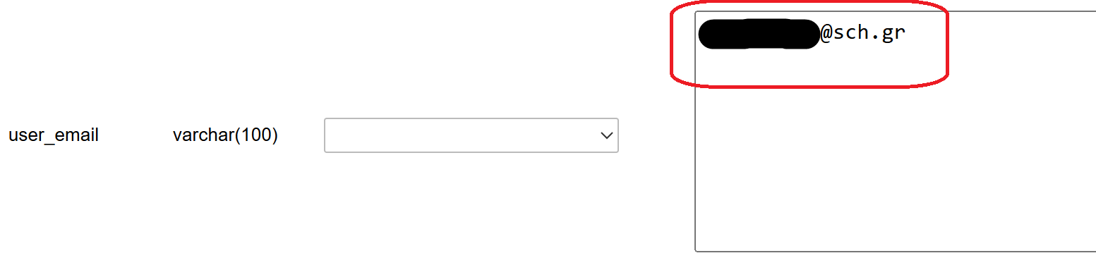 Το PhpMyAdmin θα ανοίξει τώρα τη γραμμή χρήστη σε μια φόρμα. Μπορείτε να εισάγετε τη νέα διεύθυνση ηλεκτρονικού ταχυδρομείου στο πεδίο user_email.